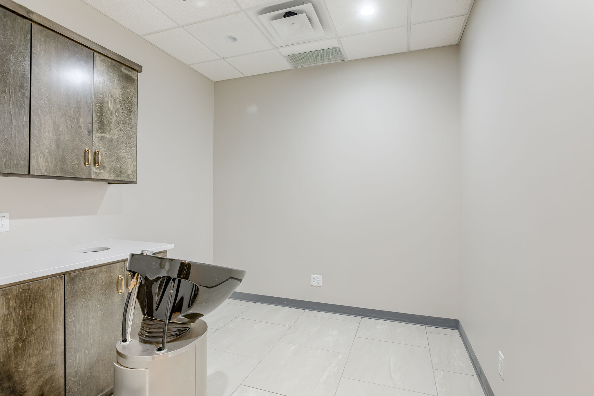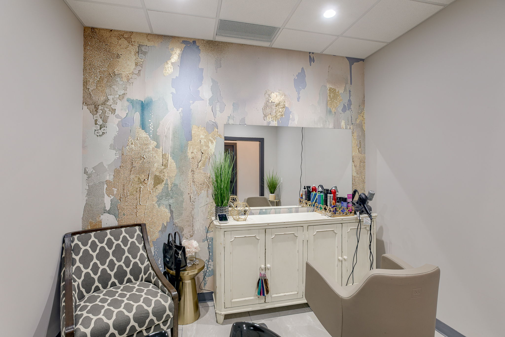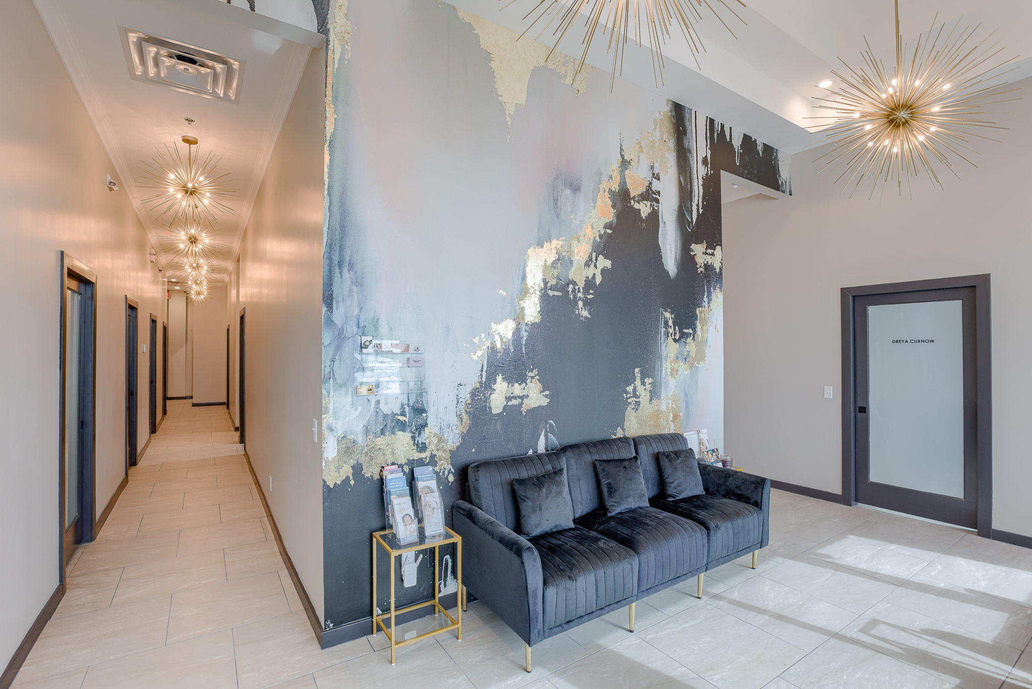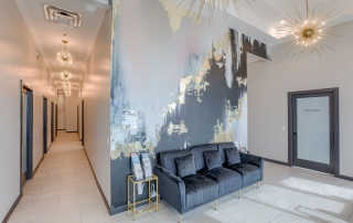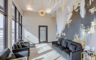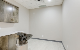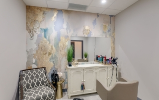 The Beauty Lounge KC is a woman-owned salon redefining luxury with 14 individual suites in a modern, all-in-one beauty destination. A3G Architects transformed the 2,400 SF warm shell into a sophisticated space featuring a welcoming lobby, breakroom, restrooms, and utility room. Each 10’x10′ suite includes casework, a shampoo bowl or hand sink, and serves as a customizable canvas for stylists and aestheticians. The design blends elegance and function with gold Sputnik chandeliers, emerald and white marble wallcoverings, concrete-look porcelain tile, and warm gold accents throughout. Dark wood cabinetry with sleek hardware adds a refined, practical touch—creating a space that’s both upscale and user-friendly.