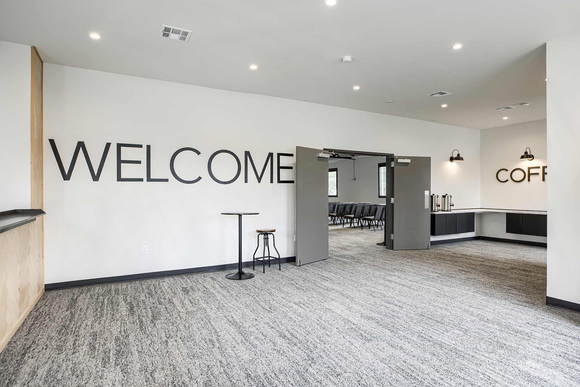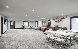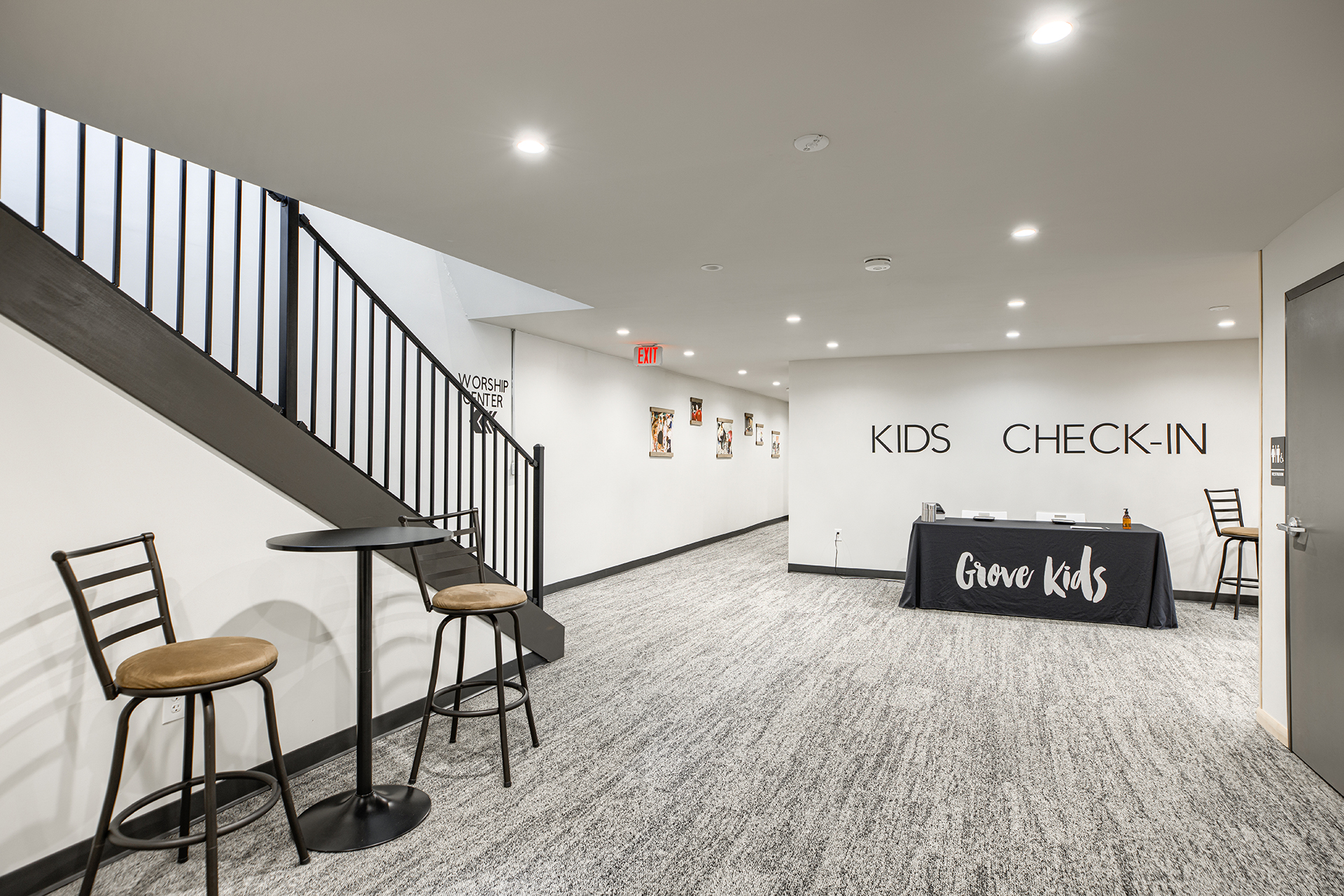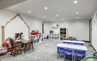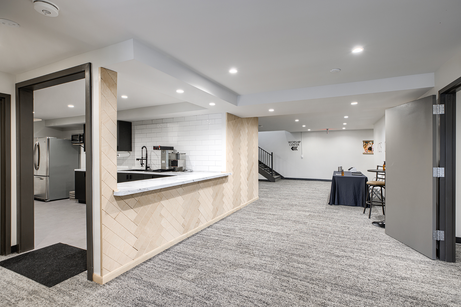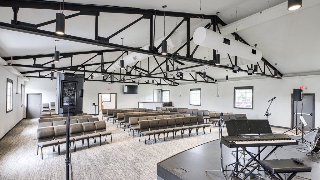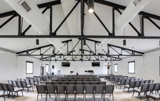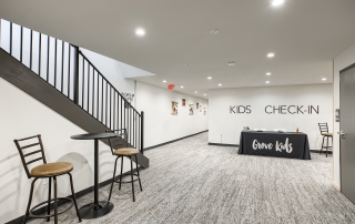 The Grove Church renovated the previous Odd Fellows Lodge in Gladstone, Missouri into their permanent home. The sanctuary was created by refreshing an existing assembly space. We removed the dropped ceiling, floor platforms, and fixed seating. We made the space more functional for the church by including dedicated storage, an AV booth, a welcome area, and accessible restrooms on the main level. An extensive renovation of the lower level included removing and rebuilding Interior walls to accommodate the new program type and to provide additional support to the floor framing of the sanctuary above. We were able to re-purpose the existing lumber to give the building a new life. It now houses two offices, a kitchenette, restrooms, and dedicated spaces for infants, preschoolers, and children in K-5th grade.