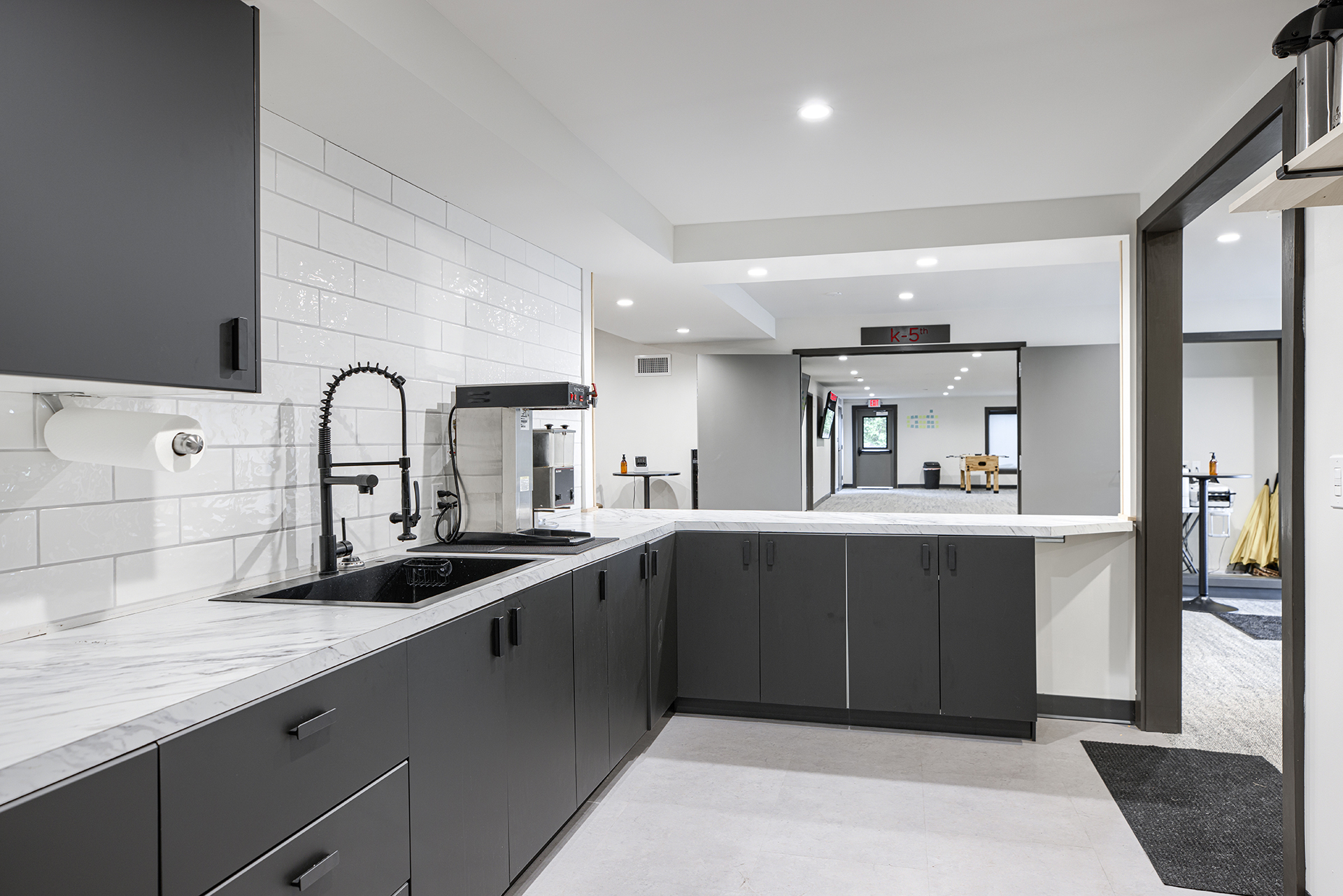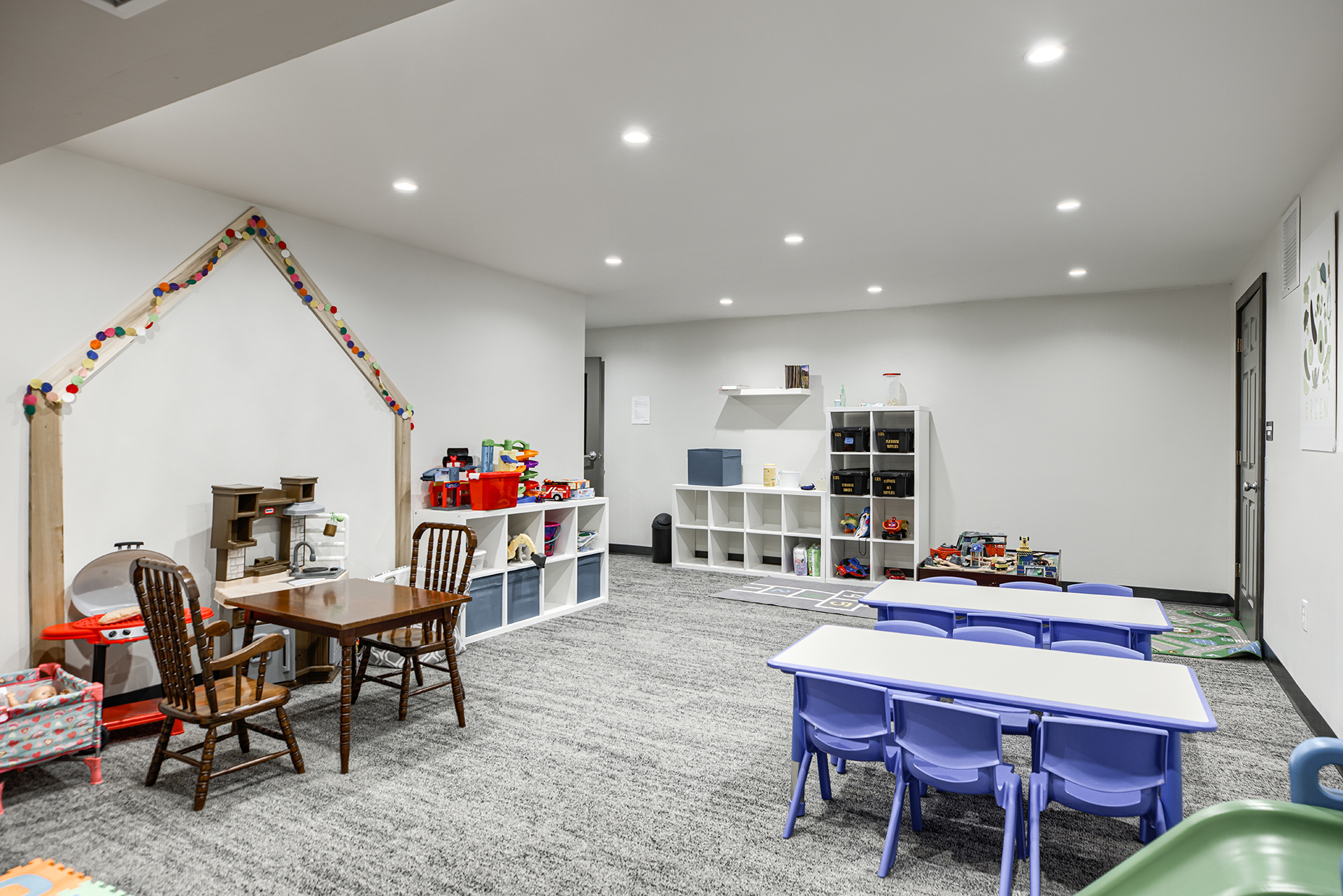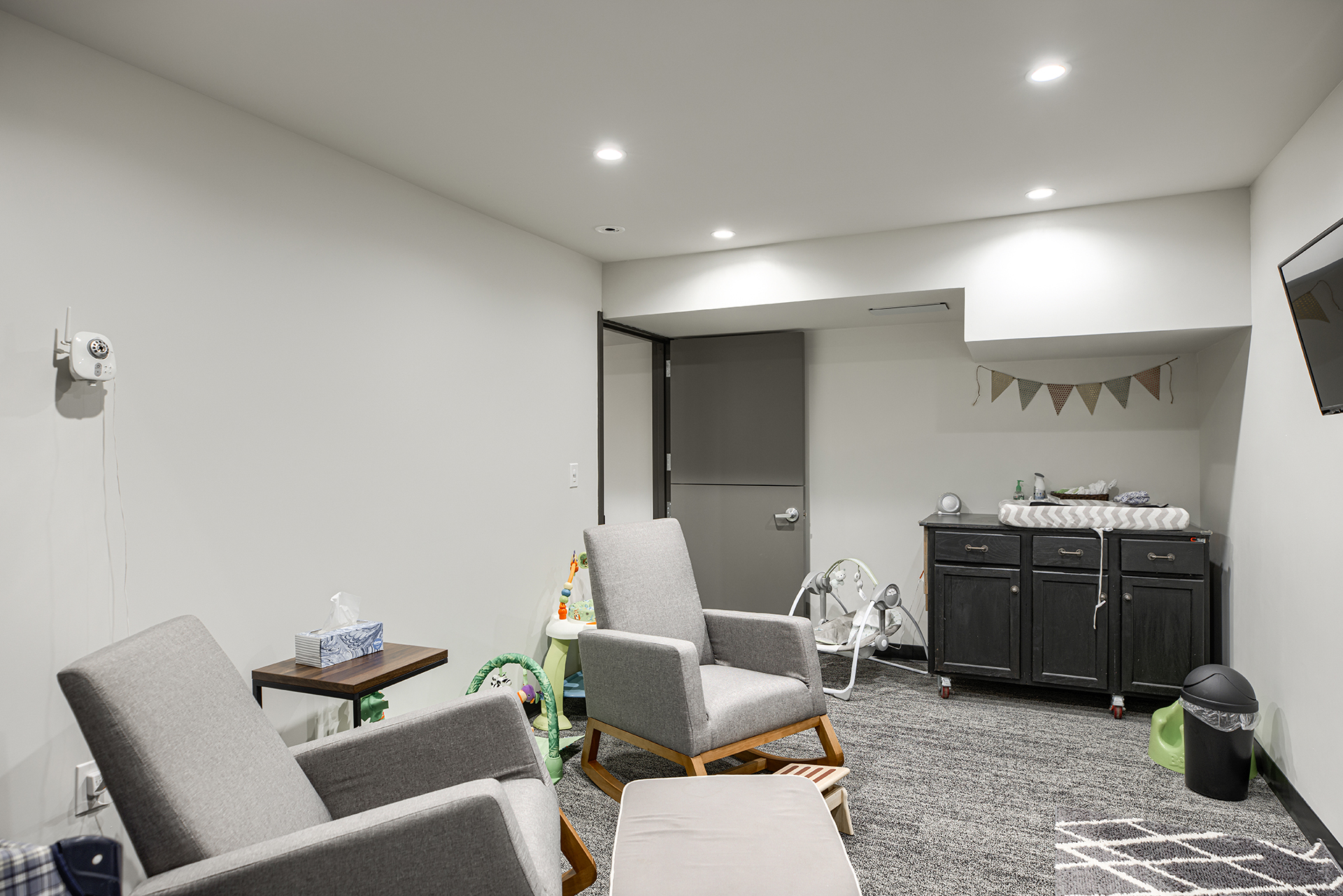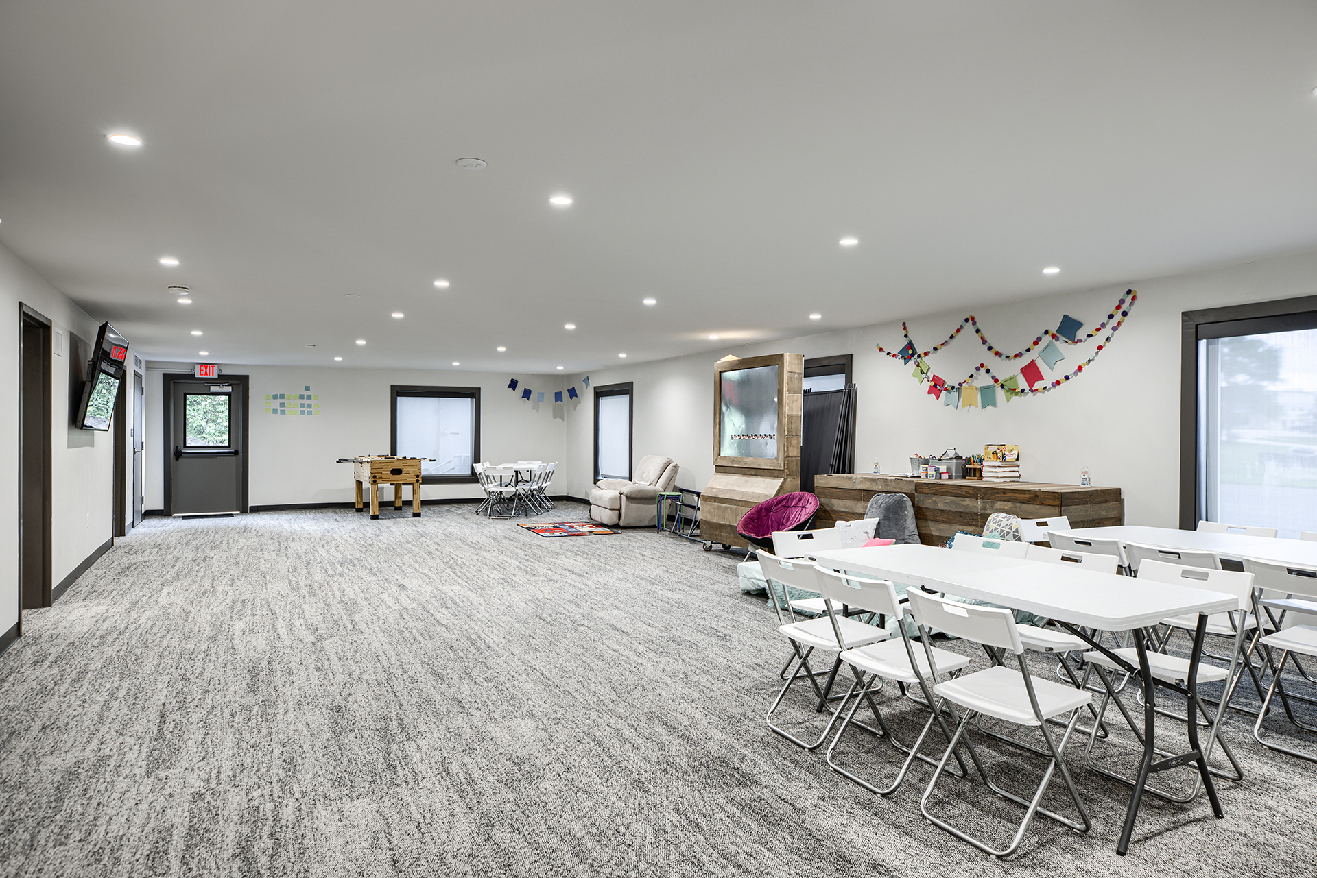 The Grove Church renovated the previous Odd Fellows Lodge in Gladstone, Missouri into their permanent home. The sanctuary was created by refreshing an existing assembly space. We removed the dropped ceiling, floor platforms, and fixed seating. We made the space more functional for the church by including dedicated storage, an AV booth, a welcome area, and accessible restrooms on the main level. An extensive renovation of the lower level included removing and rebuilding Interior walls to accommodate the new program type and to provide additional support to the floor framing of the sanctuary above. We were able to re-purpose the existing lumber to give the building a new life. It now houses two offices, a kitchenette, restrooms, and dedicated spaces for infants, preschoolers, and children in K-5th grade.
