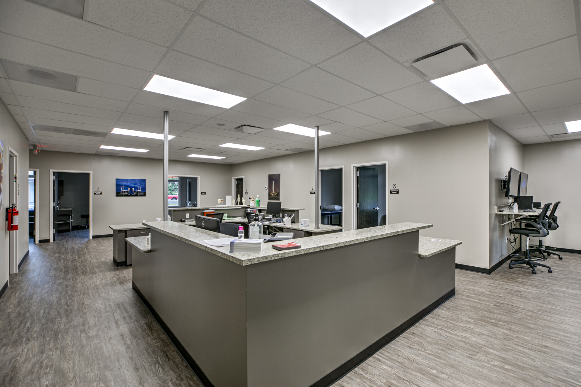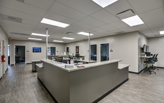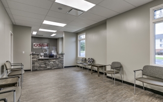 OSI (Orthopedics and Sports Medicine) has reception with waiting area, eight treatment rooms, an X-ray room, break, and an area for doctors to sit down when needed.