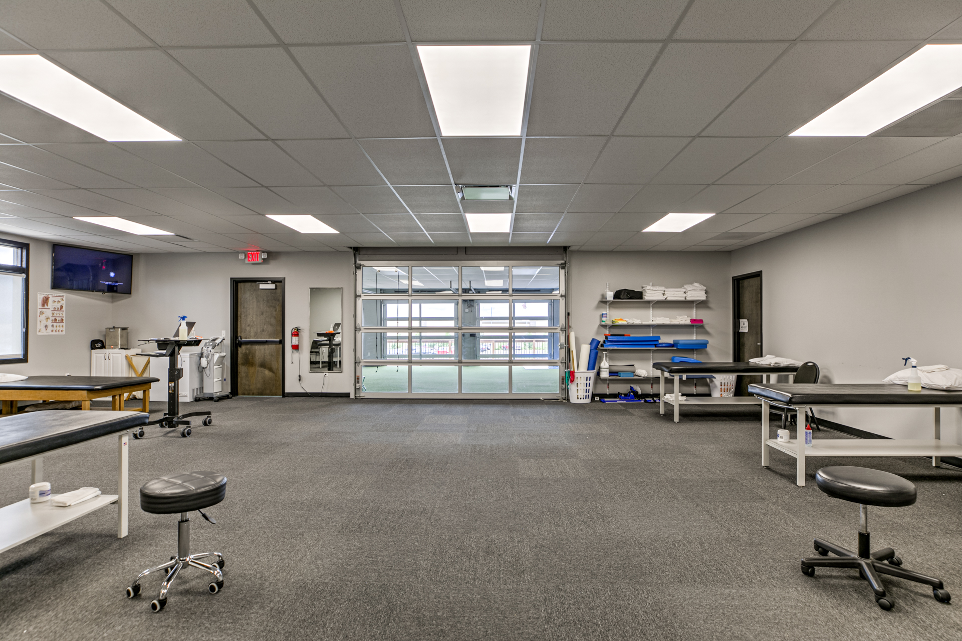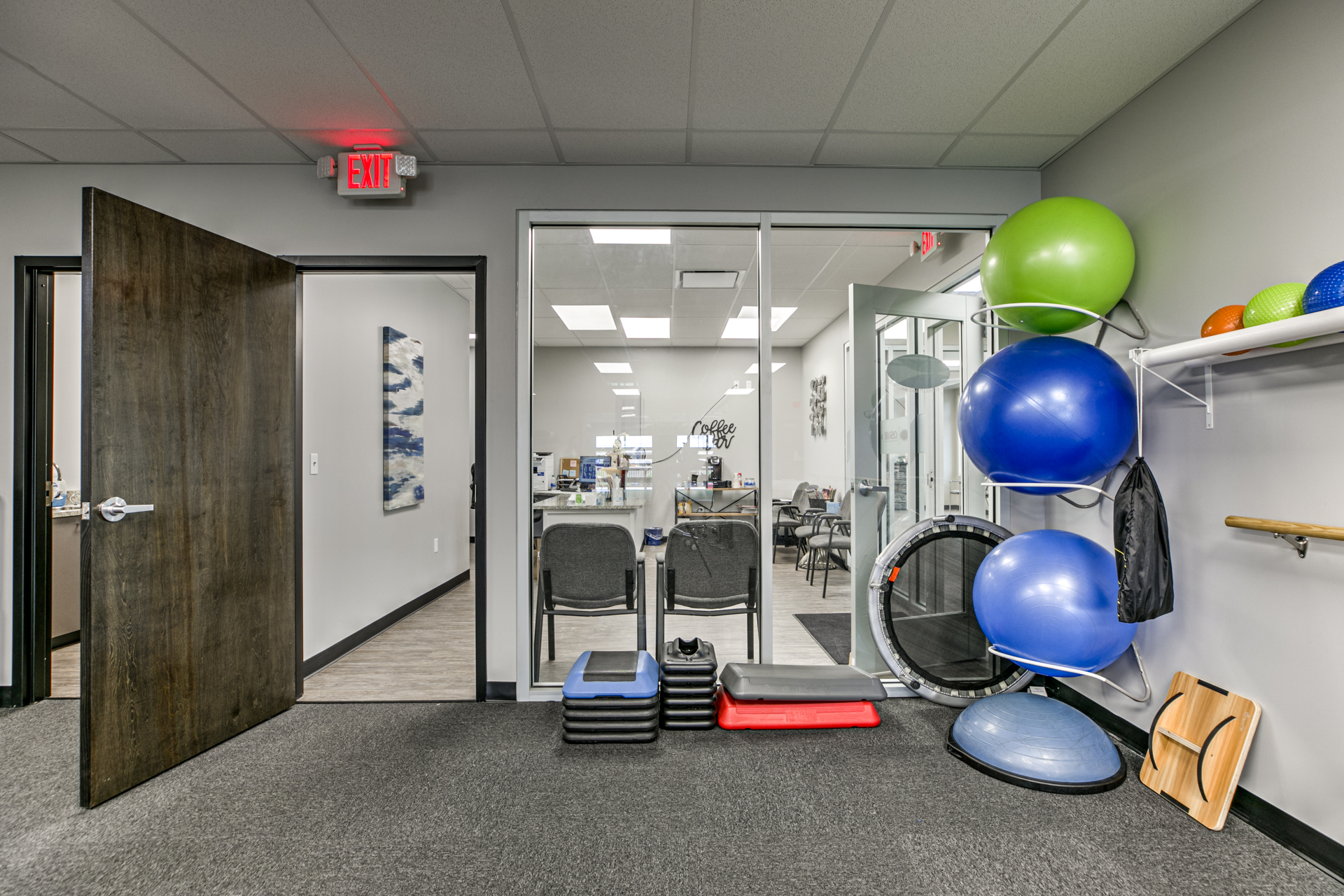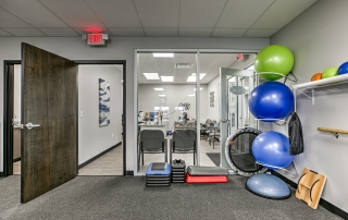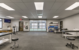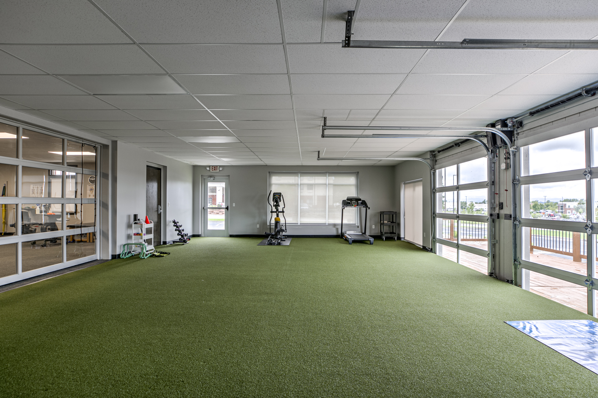 The CORE Physical Therapy and Rehabilitation space utilized the former covered patio as an open-air physical therapy room that can be opened by a garage door creating dual areas for clients undergoing therapy. Reimagining this space was a rewarding challenge and now CORE’s clientele can do the challenging work of rehabilitation and enjoy fresh air in this unique space.