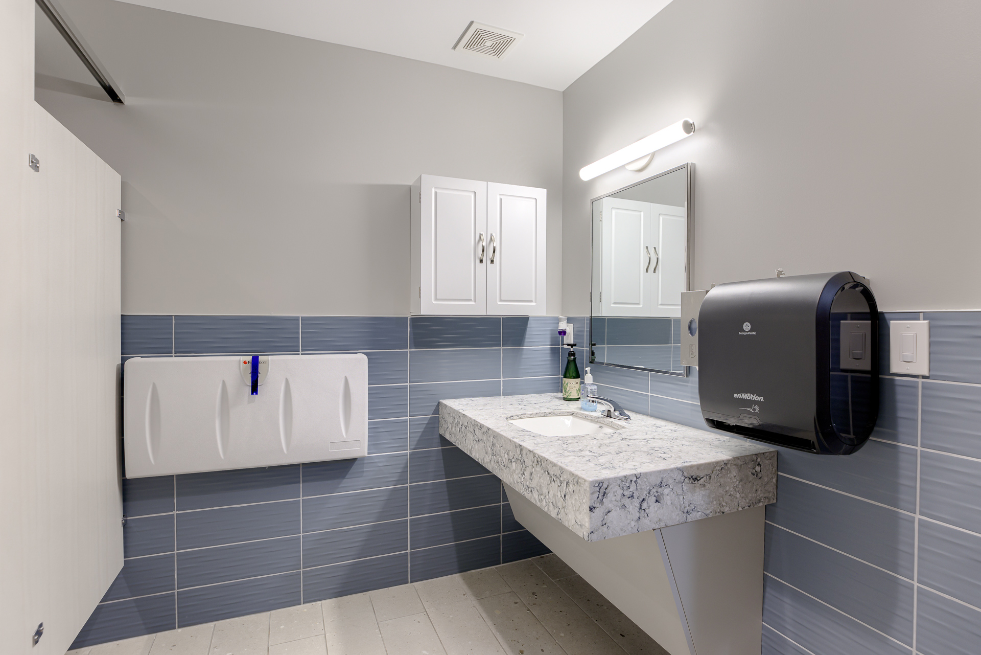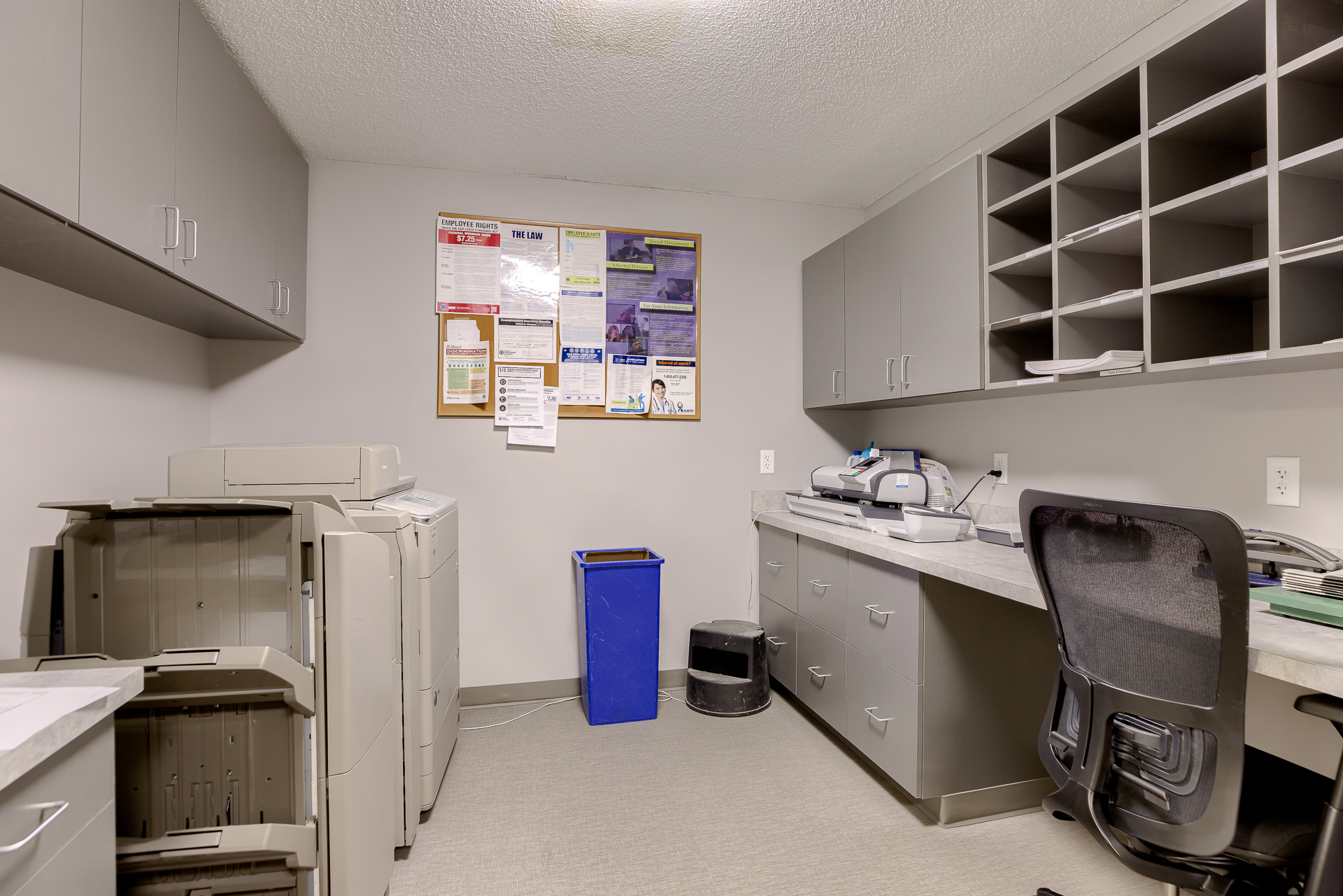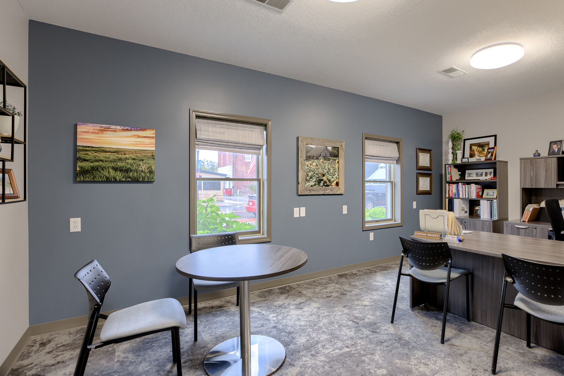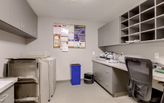 The Smithville City Hall Council Chamber was a multi-use space connected to the Police wing, the Administration wing, the two restrooms, and staff break room. This created noise and sightline issues that were disruptive when the space was in use. The space also had high ceilings and hard surfaces making for a very loud meeting space. We created a separate corridor allowed the traffic to flow throughout the building without coming through the Council Chambers. The room was larger than necessary, so adding this corridor did not reduce functionality. A large closet to store additional furniture to allow various configurations in the main Council Chambers so it can easily serve multiple functions. Adding a lower acoustical ceiling and soft recycled plastic flooring helped reduce noise.