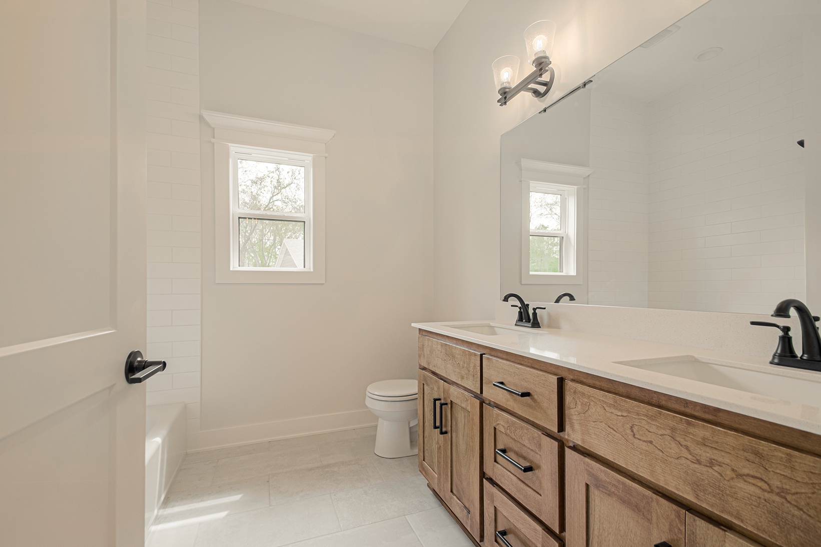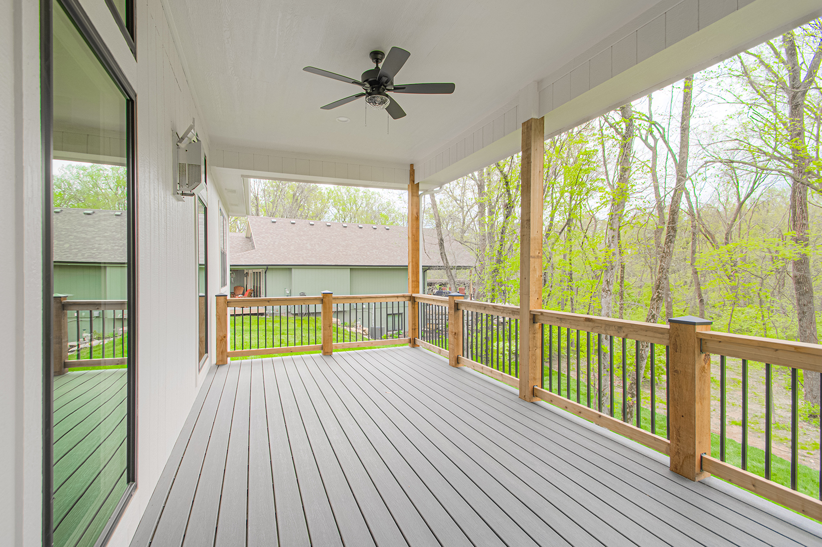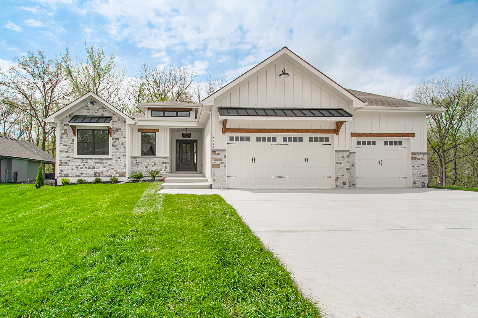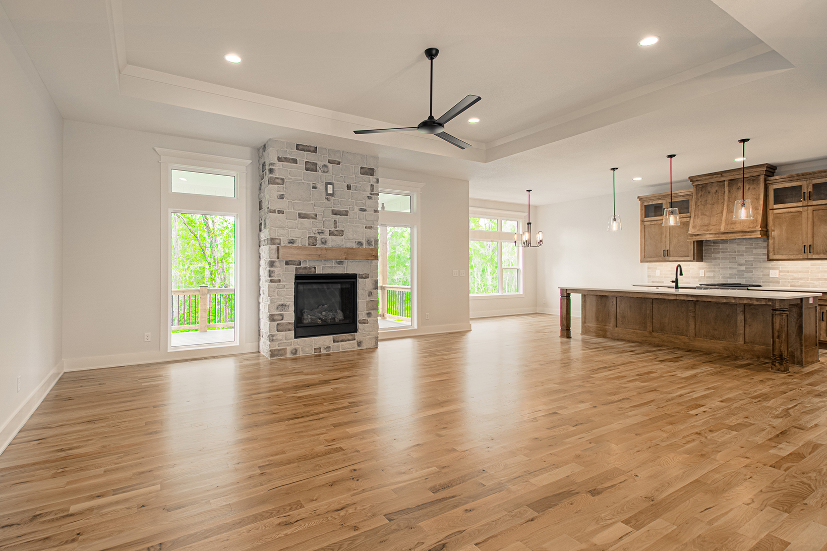 Welcome to this beautifully crafted 2,013 square foot home by Rockwood Builders, located in the Timber Ridge neighborhood. Featuring 3 bedrooms, 2 bathrooms, and a spacious 3-car garage, this home offers an open and airy layout designed for modern living. Large windows fill the interior with natural light and provide serene views of the wooded area behind the lot. The living room and primary suite feature box vault ceilings, adding architectural interest and a sense of space. A stone fireplace anchors the main living area, creating a cozy focal point. Step outside to enjoy the 220 square foot covered deck—perfect for relaxing or entertaining year-round. Thoughtfully designed and rich in detail, this home blends comfort, function, and style.