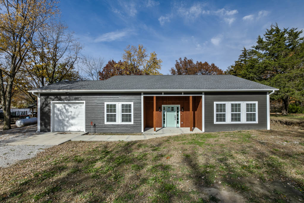 The design of this two-bedroom, one-bathroom home is both efficient and economical. The slab-on-grade home uses SIPs panels for exterior walls and wood trusses for roof framing. It’s simple shape and single-story layout helped to minimize construction time and waste.