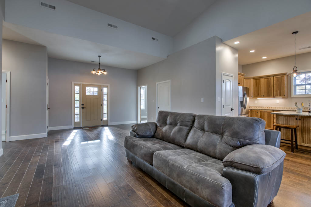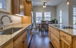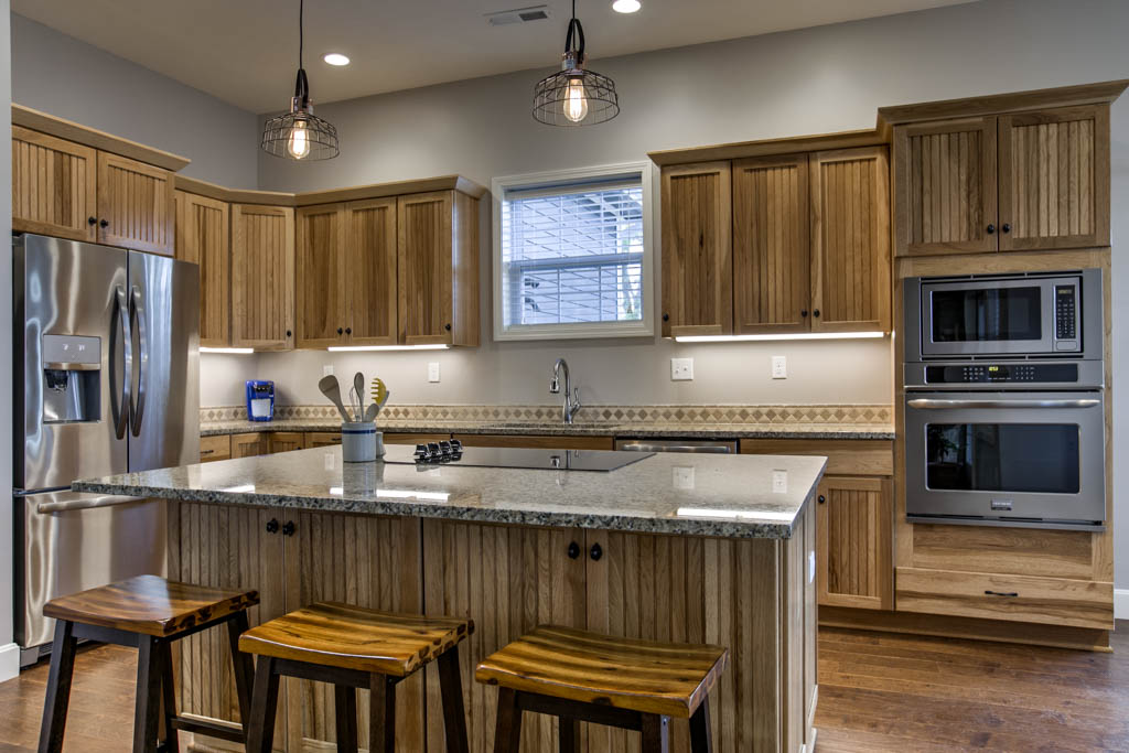 When planning the design of this home, it was important to create an adaptable space that allowed the homeowners to age in place. The home was strategically placed in order to maximize the surrounding views. An open plan and vaulted ceilings provide a spacious feel within the small footprint.