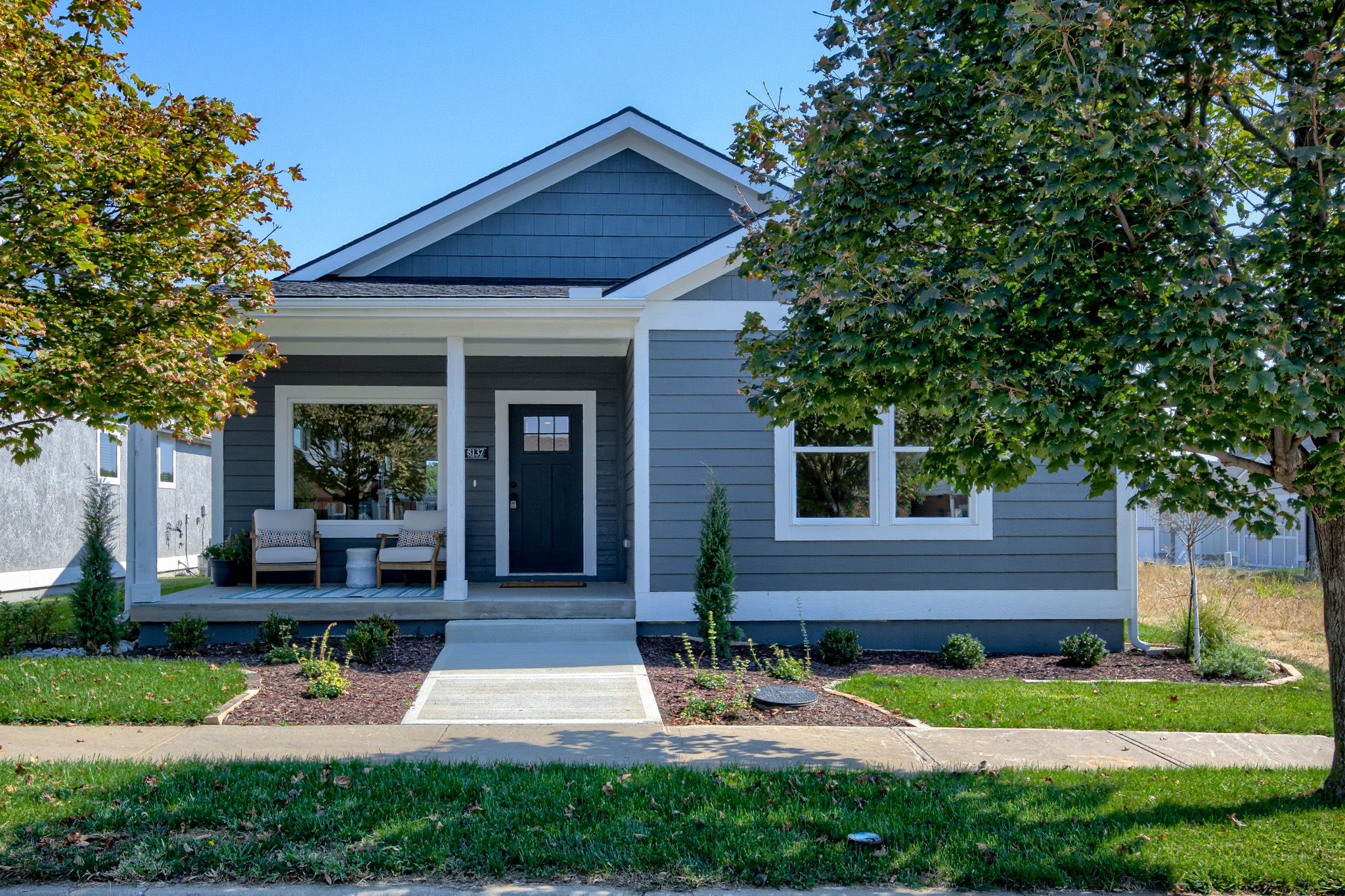 This stunning new construction home in the sought-after Shoal Creek development offers modern living with a one-story design and a finished basement. Boasting four spacious bedrooms and three bathrooms, this home provides ample space for family and guests. The open-concept layout seamlessly connects the living, dining, and kitchen areas, perfect for entertaining. A front porch welcomes you, while a 160-square-foot covered patio offers a peaceful outdoor retreat. The primary suite features a walk-in closet that conveniently connects to the laundry room. With a two-car garage and modern finishes throughout, this home combines comfort and functionality. Located in the trendy new urban neighborhood of Shoal Creek, it offers the perfect balance of suburban tranquility and city access.