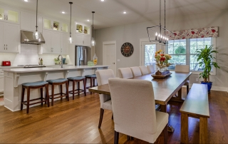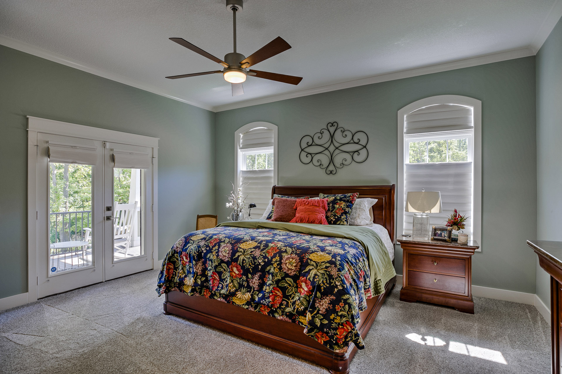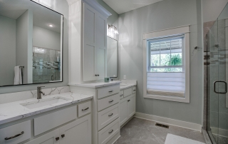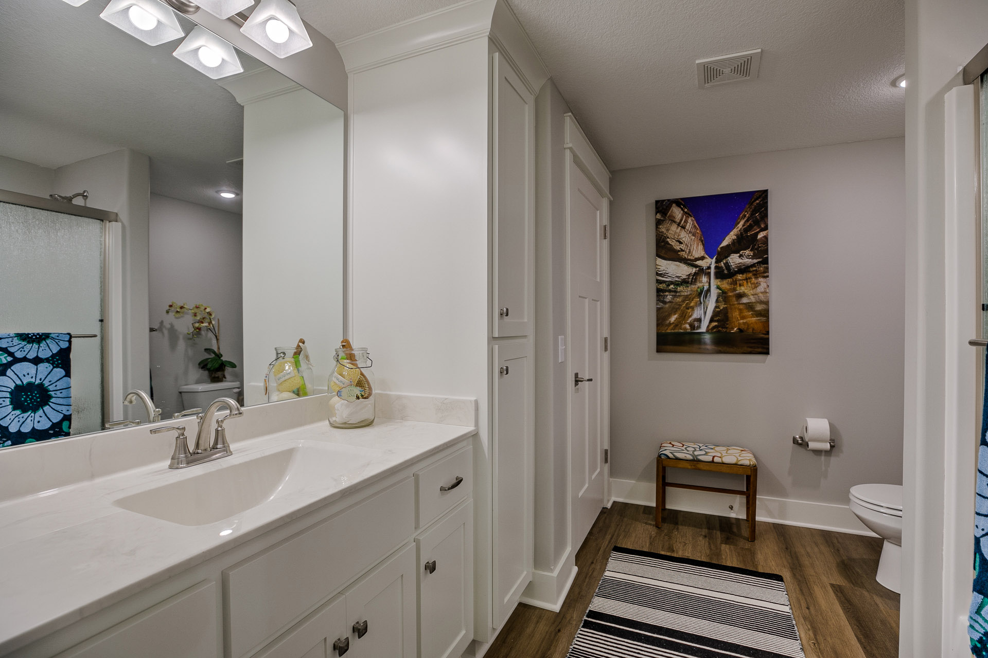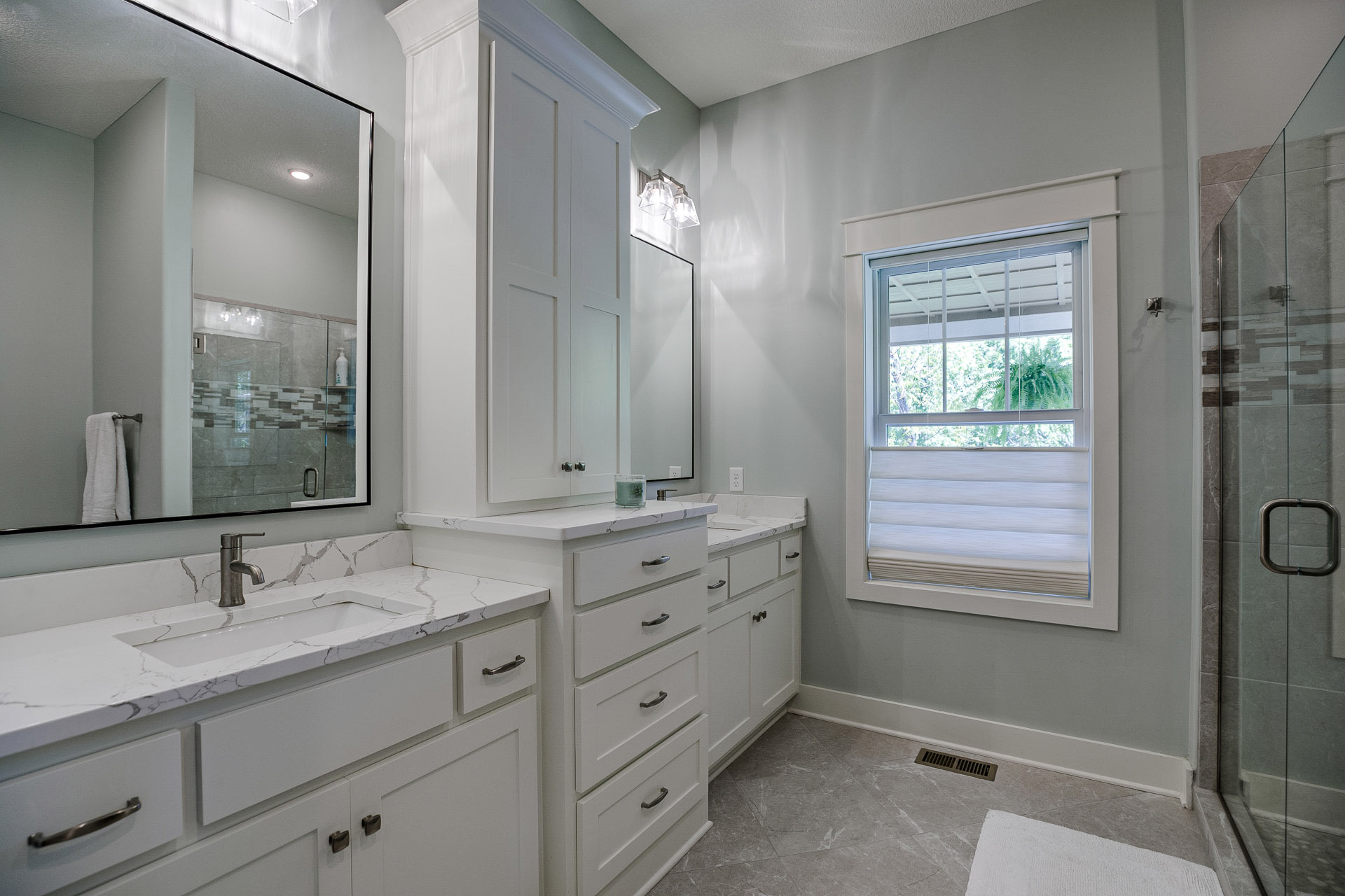 This home’s wrap-around front porch with barrel vault cedar-finished ceiling is an unexpected luxury, giving visitors an idea of the finishes inside. Upon entering, guests first experience the high ceilings and cozy feeling, ending with the soft finishings contrasted with traditional warm oak wood in the flooring and in the mantle above the stone fireplace. The contemporary kitchen is fixed with an island breakfast bar and modern light fixtures throughout. The main floor is home to the primary suite, two bedrooms and 2.5 bathrooms. The basement is fully finished with two bedrooms and one full bath, a wet bar wrapped in a subway tile backsplash, and a large entertainment area.