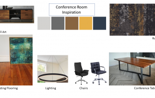 We want to let the hardwood floor shine, but still need to provide some sound absorption so a large rug will be used for the space. We are also working with a local artist, who will be designing and building our new conference table. Our focus is to combine form and function to create an eye catching first impression.